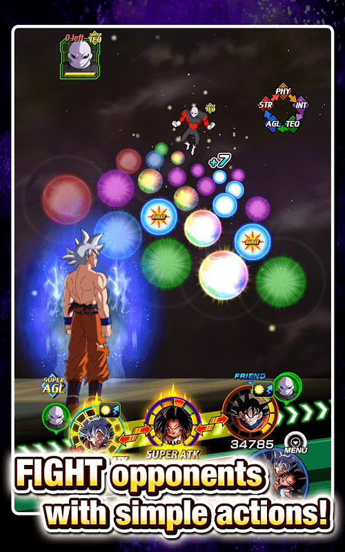 The core and chief gameplay of the game is a card-based combat system where players need to collect different role cards that represent various warriors from the Dragon Ball series, including Goku, Vegeta, and Flisa. Each card has its own unique attributes, abilities, and attack types, and players need to match their teams according to who they are fighting and the scene. The puzzle element in the battle is represented as the "air beads" system, the screen will show many colored air beads, and the player needs to connect the same color air beads to save energy for the character, and after saving to a certain extent, you can release powerful killing skills. The key to victory is to properly plan the connection of airballs and the timing of skill release in battle.