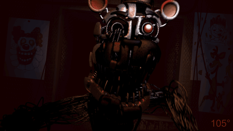 In FNaF 6, the two different game modes have very different visual styles. In daytime mode, the game is presented in a minimalist cartoon style, while at night, the classic thriller style of the series continues. In terms of sound effects, the game maintains the characteristics of the FNaF series, a variety of noise, mechanical sounds, and from time to time scare sound effects, with the tense game atmosphere, to create a creepy experience.